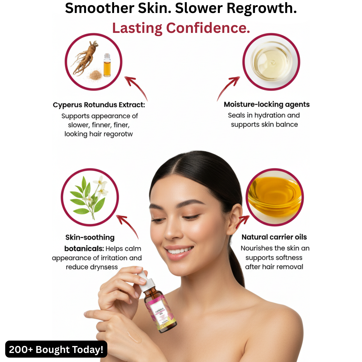 “Most people don’t need harsher tools or painful treatments, they need a routine they can actually stick to. When used consistently after hair removal, Cyperus Rotundus Hair Growth Inhibiting Oil supports calmer skin and slower-looking regrowth over time. That balance is what makes it realistic for everyday use.”