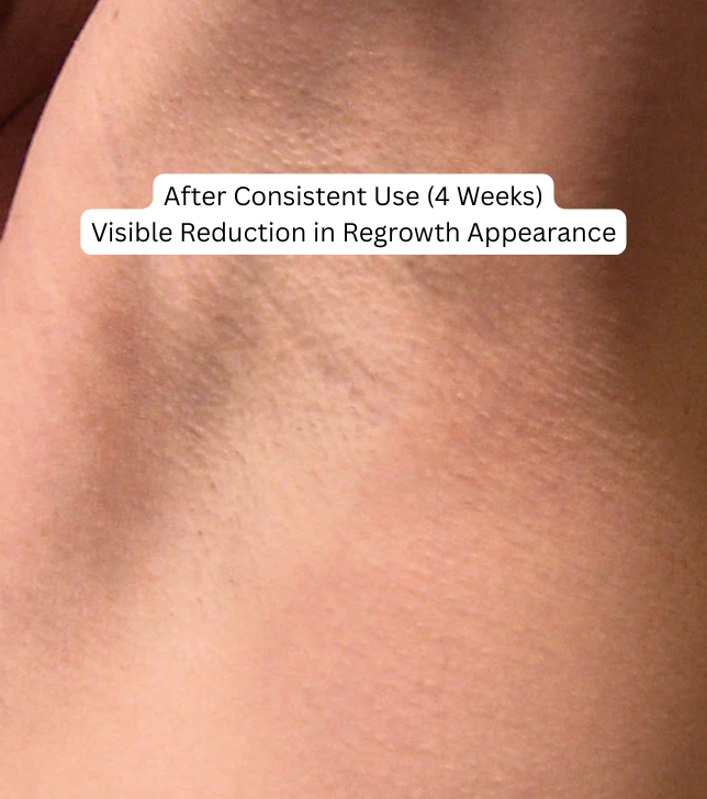 Many users notice smoother skin and less stubble within a few uses. Visible reduction in the appearance of regrowth typically improves with consistent use over several weeks.
